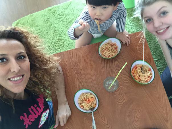 Au pairs from Slovakia, Dana, and Germany, Solvieg, want to cook some Western food for her Chinese host sister PaoPao. PaoPao is very lucky since she has two foreign sisters at home! One au pair gives you lots of happiness, but now imagine how much happiness two au pairs can bring! Firstly, girls go to the supermarket to buy all the necessary ingredients. They buy some meat, pasta and tomatoes. They want to prepare spaghetti! After shopping, they come back home and start preparing the dish. They cut the meat and tomatoes, then cook all the necessary ingredients and after a while the delicious spaghetti is ready to eat! PaoPao loves it! This is also the chance to teach little PaoPao how to use the cutlery. After a few attempts, using a fork, a knife and a spoon is not a problem for little PaoPao at all! It is so great to have a foreign sister, or even two, at home! Not only will au pairs teach English, but they will also introduce some Western culture and customs to their Chinese host families!