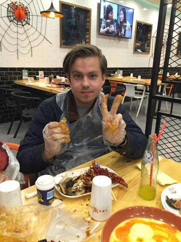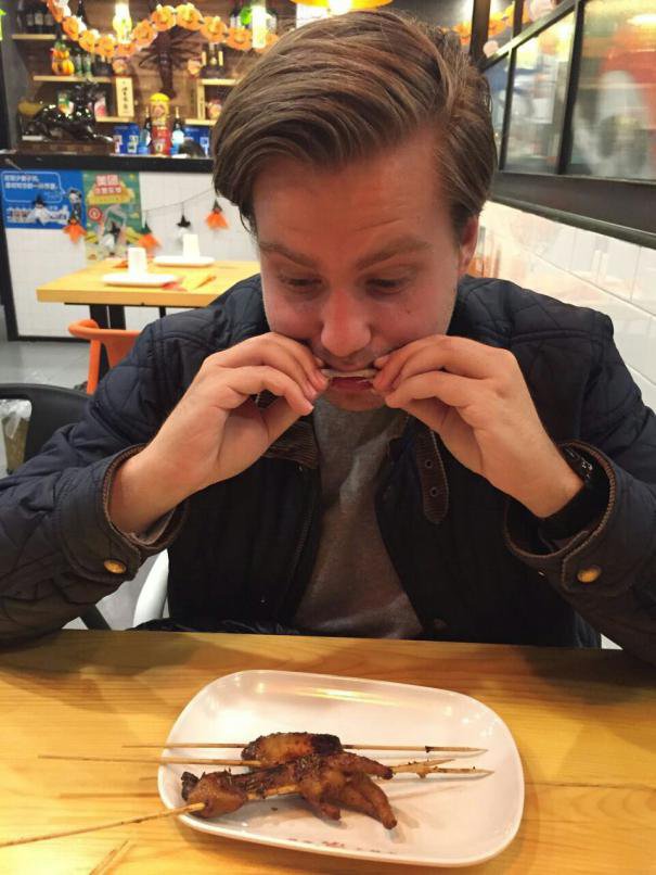 Our brave au pair from Holland, Pim, wants to taste some Chinese, exotic, food which is not so easy to be found in Europe. China is famous for its varied and delicious food. Sometimes one dish might have up to several various way of preparing and thus several different flavours. Some meals might be rather exotic for European, for instance chicken paws or some insects. Some dishes, coming from Sichuan cuisine, might be very spicy and they are hardly tolerated by an average European. But Pim is brave enough to taste some of these exotic dishes. First, he tries chicken paws, which maybe look a little bit terrifying, but with an addition of seasonings, they are quite tasty. Then he wants to try some spicy Sichuan dish. He orders some seafood, some meat and vegetables, all prepared in a way characteristic for Sichuan cuisine. Not only does he not complain about the food, but he also loves it very much! This is what very au pair can get in China : unforgettable memories!
