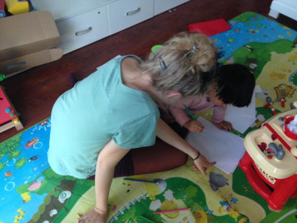 Au pair from Germany, Solveig, is playing with her Chinese host sister, PaoPao. It is weekend, PaoPao does not go to the kindergarden, so the girls have the opportunity to spend more time together. PaoPao loves pretending that she is the chef at the restaurant. Solveig is accompanying her during the play. PaoPao is preparing various meals and at the same time Solveig is teaching her English. How is she doing that? She is telling PaoPao English names of various utensils PaoPao is playing with. PaoPao is also drawing the pictures of meals she has prepared. It is another chance for Solveig to teach PaoPao some new English names of dishes. Learning English with a foreign sister is so much fun! You do not even feel that you learn anything because you just play! Having an au pair is a cool thing!