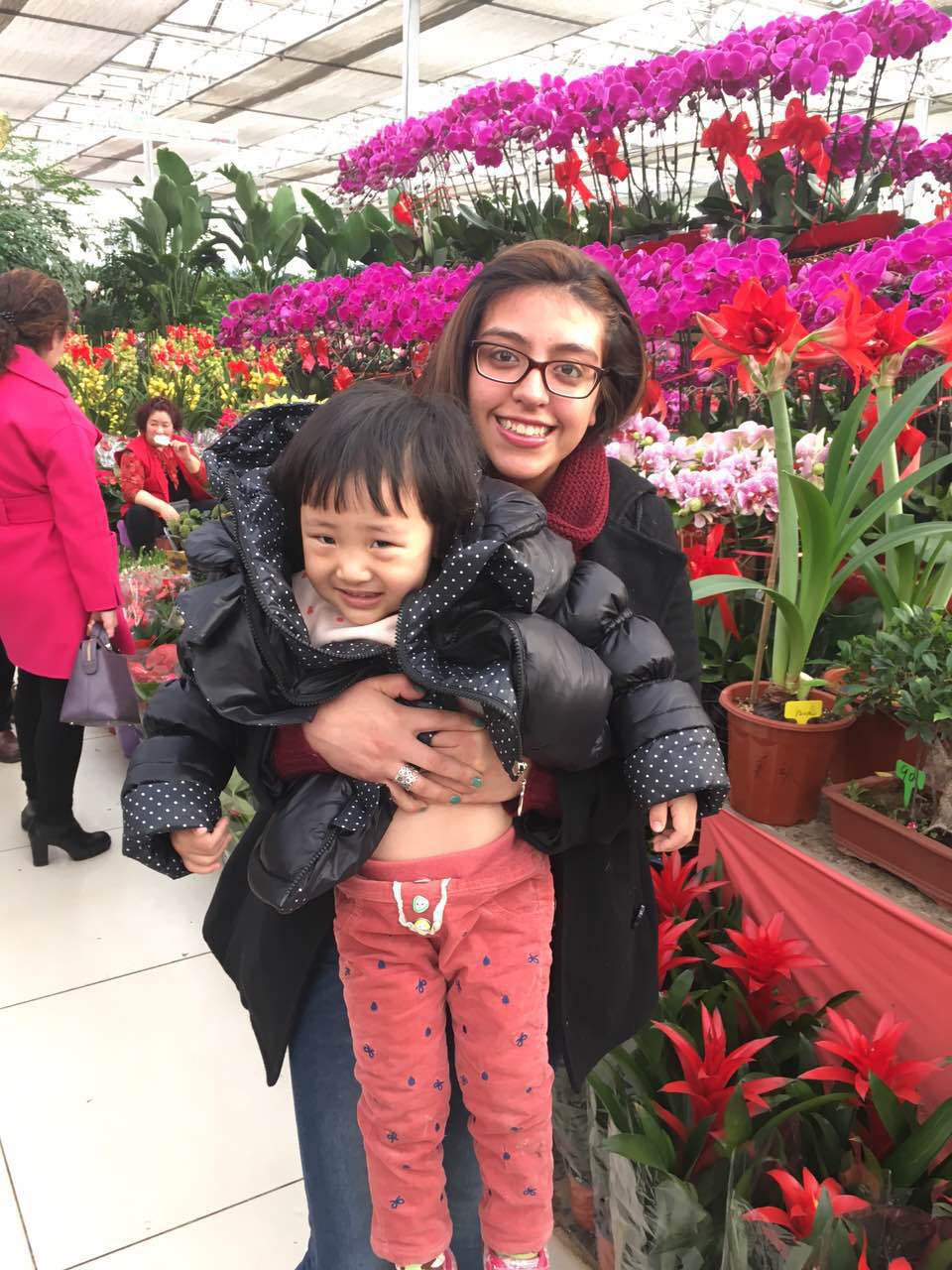 Altough it is winter our Mexican au pair Ana has found a beautiful place full of colourful flowers! She wants to show her little Chinese sister joyful spring in the middle of winter. There are various kinds of flowers: roses,tulips or orchids.The smell is beautiful and vivid colours make girls smile a lot! Ana's little sister likes this place very much, she is so happy! Ana teaches her new English names of flowers.Ana's sister asks many questions and she is eager to get to know more and more new English words.Isn't it fun to learn English in that way?