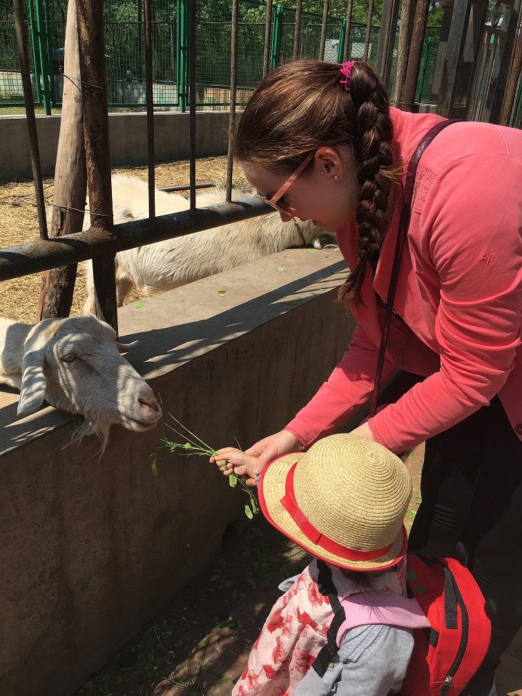 Our au pair from Germany, Elisa, goes with her little Chinese sister Sweet to the countryside. It is a beautiful sunny day and girls want to see how the life in the countryside looks like. It is so different from the life in the city! The girls see many farm animals such as cows, pigs, ducks, chickens and sheep! Little Sweet loves them all and she wants to feed some. Her foreign sister helps her to pick up some grass and to feed some sheep. It i so great to have a foreign sister who will help you with everything! It is also a great way to learn some new English words because Elisa tells Sweet the English names of the farm animals. After the long walk girls have the chance to taste some local food and after lunch they come back home. What a nice day!